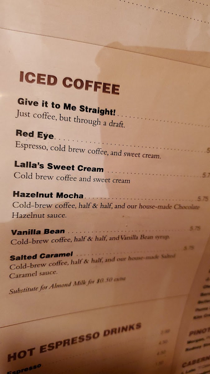 Cold brew coffee with espresso and milk, typically with a layer of foam on top.